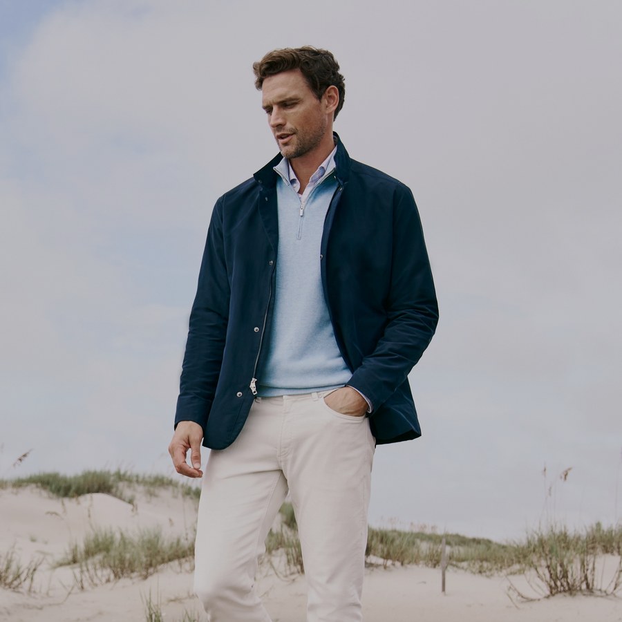 A cotton look and feel, with high-performance fibres behind the scenes to keep you cool and dry. Double down on stretch-knit comfort and mobility in this all-new jumper.